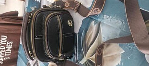 De tas is compact met afmetingen van 22x13x19 cm, maar biedt genoeg ruimte voor je dagelijkse benodigdheden.